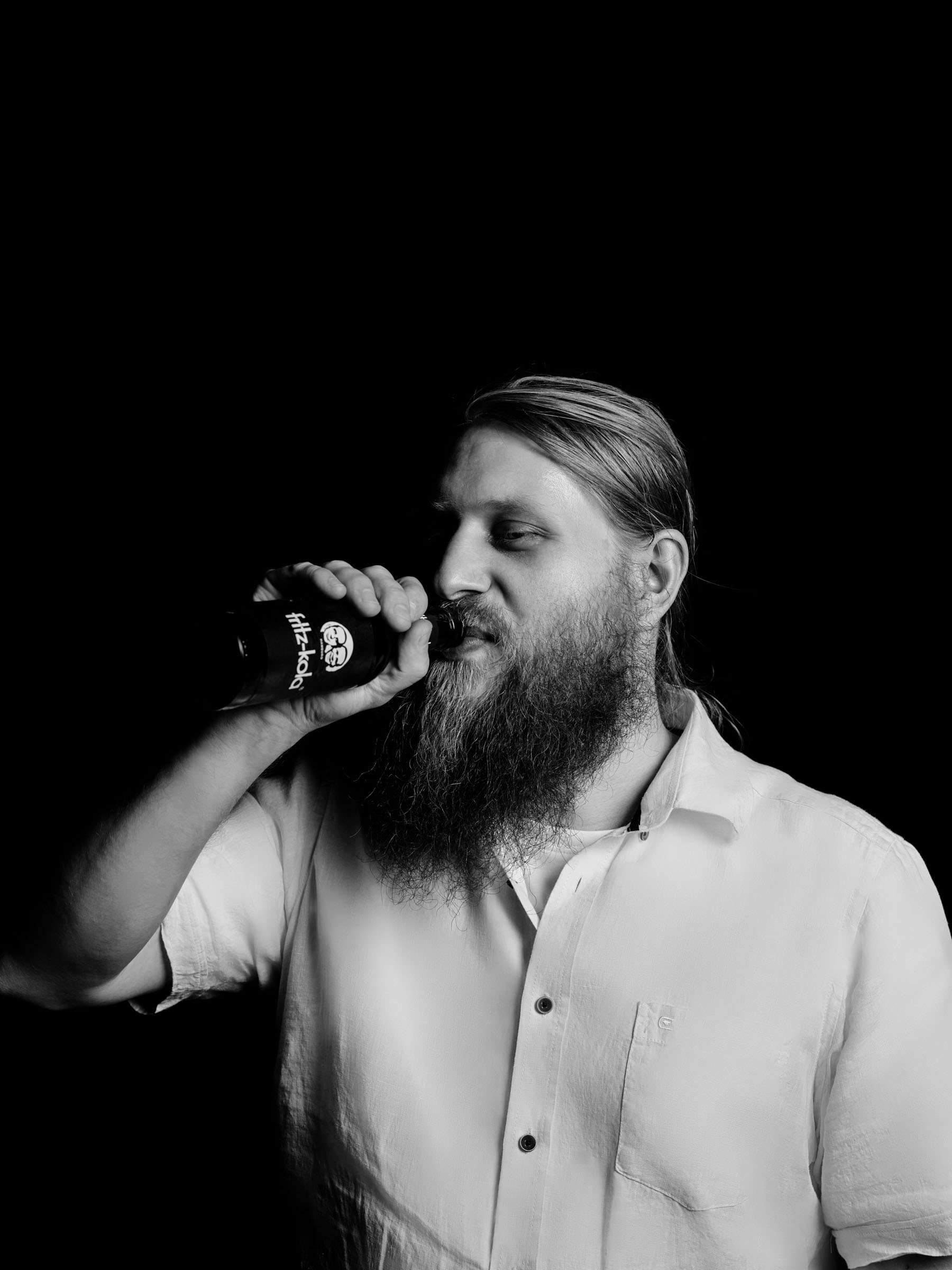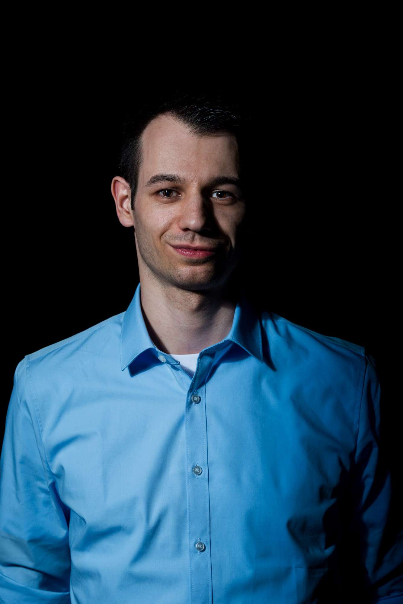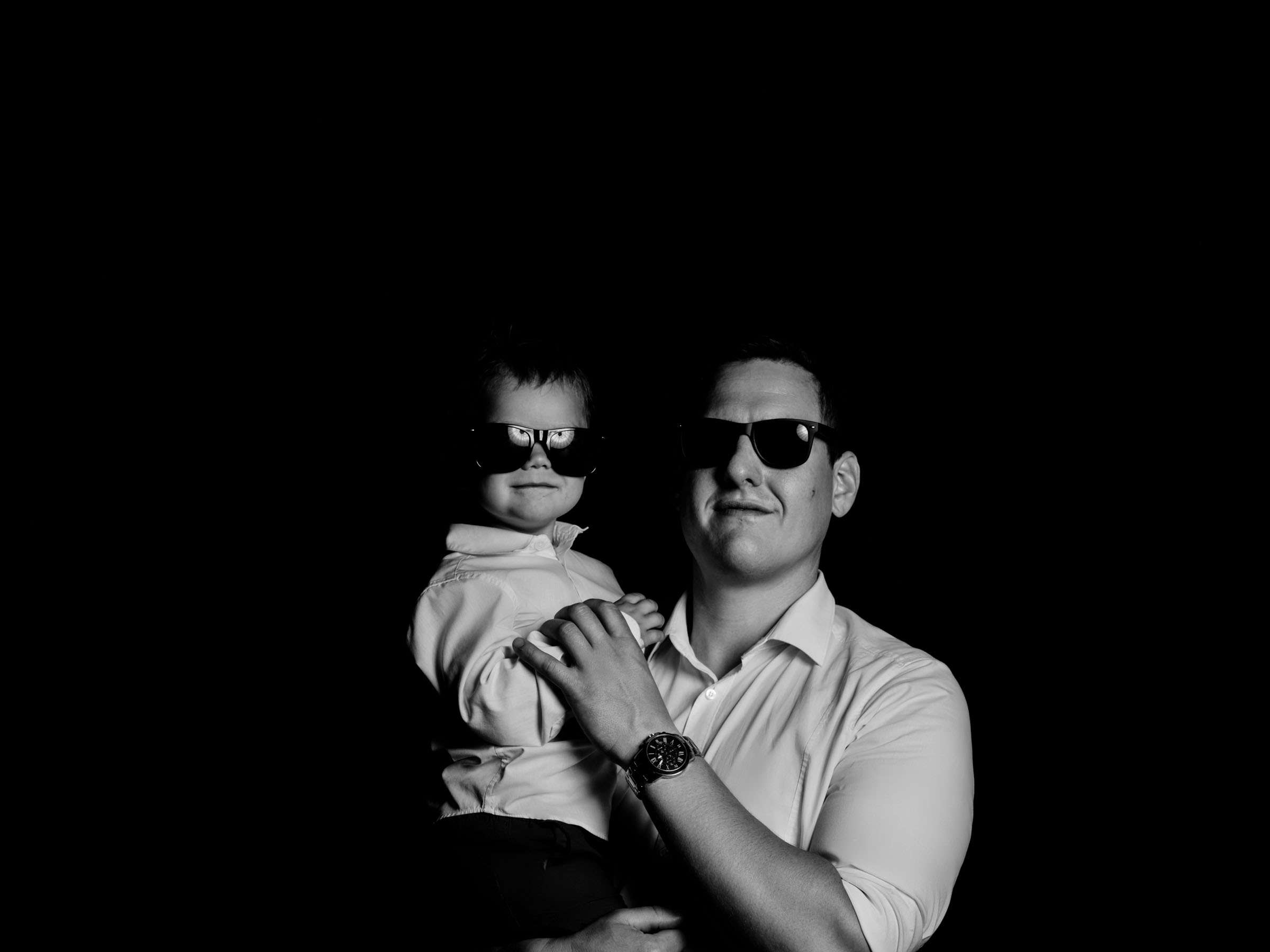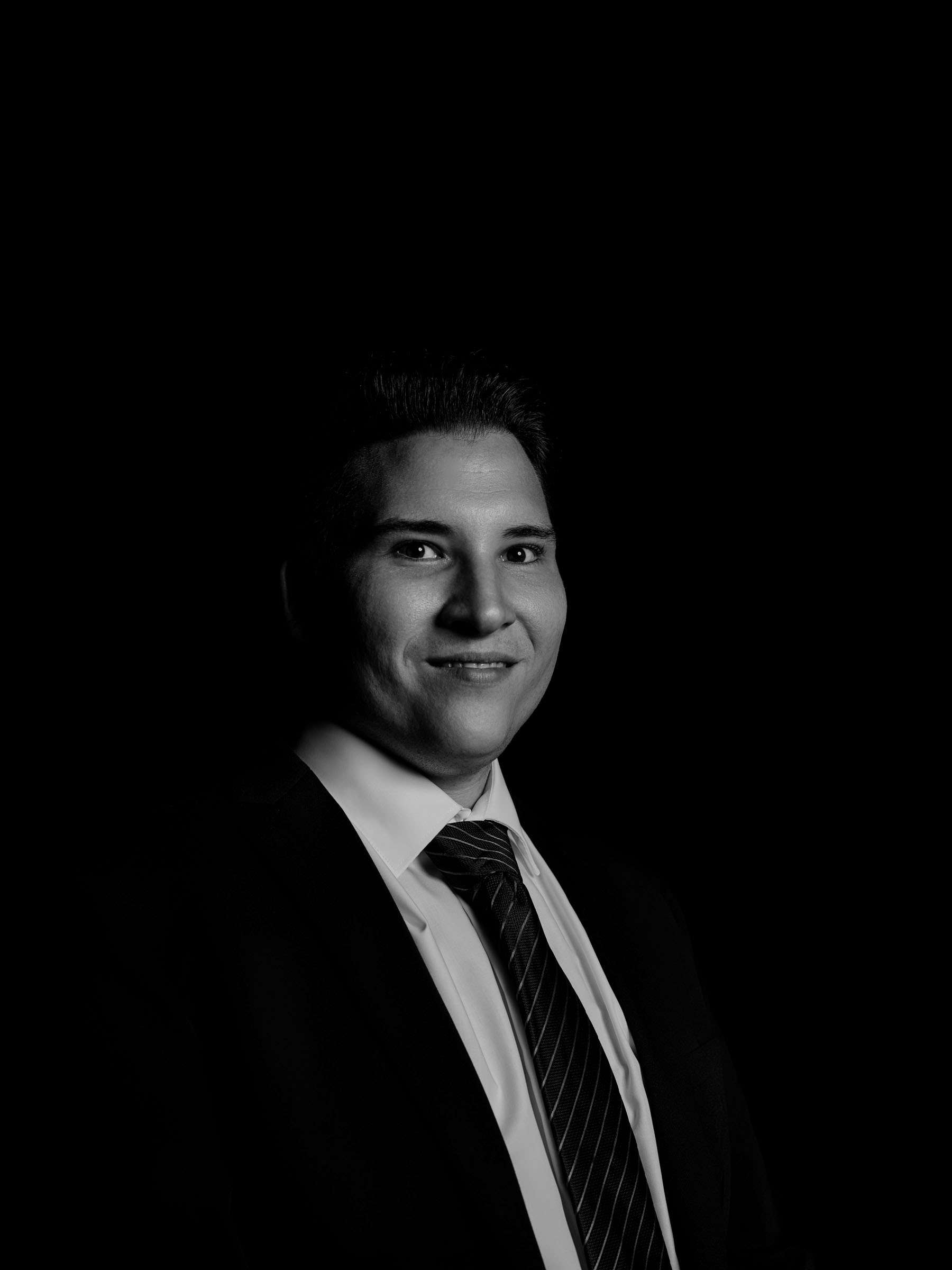 Schwarz-weiß Porträt eines Mannes mit Brille.