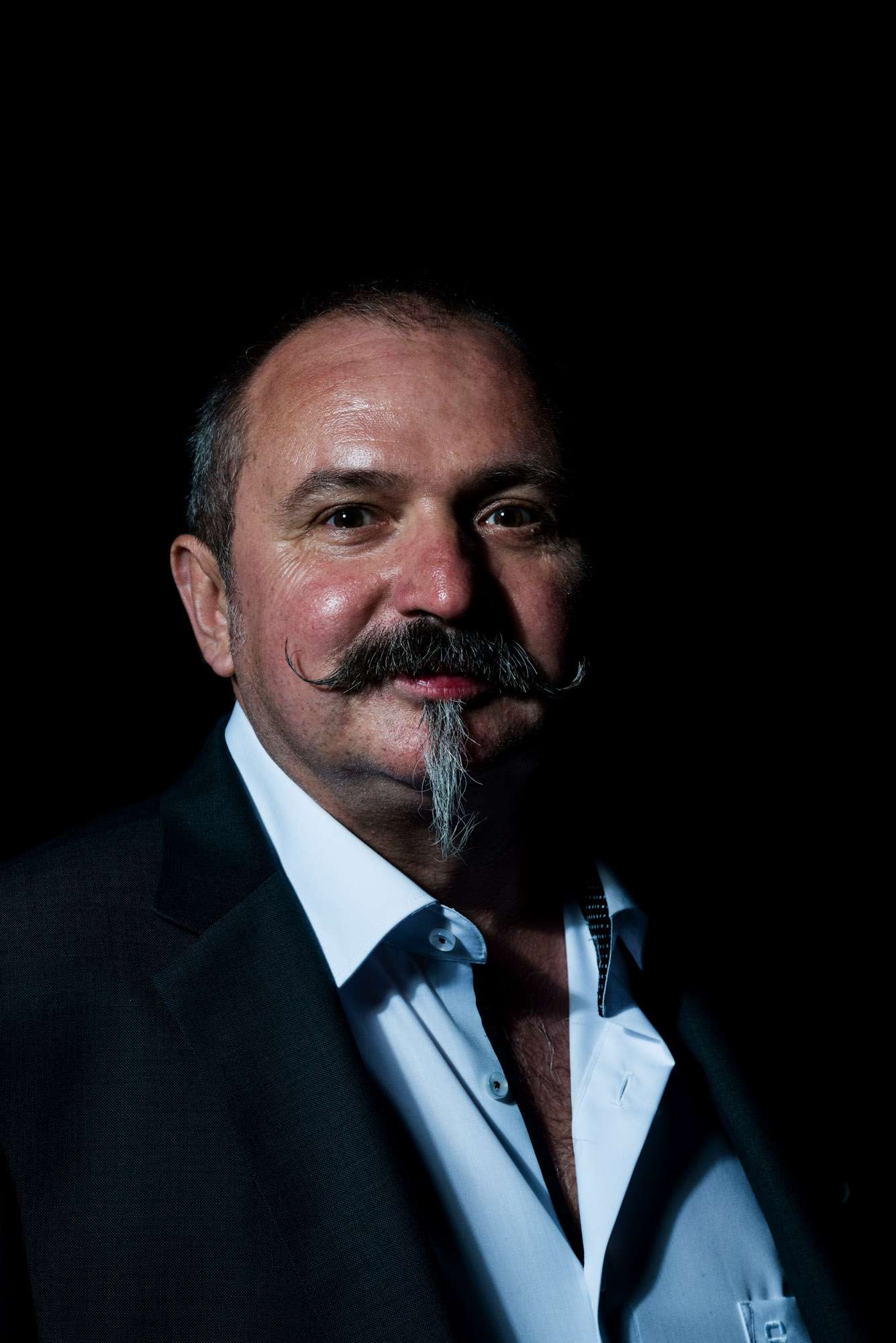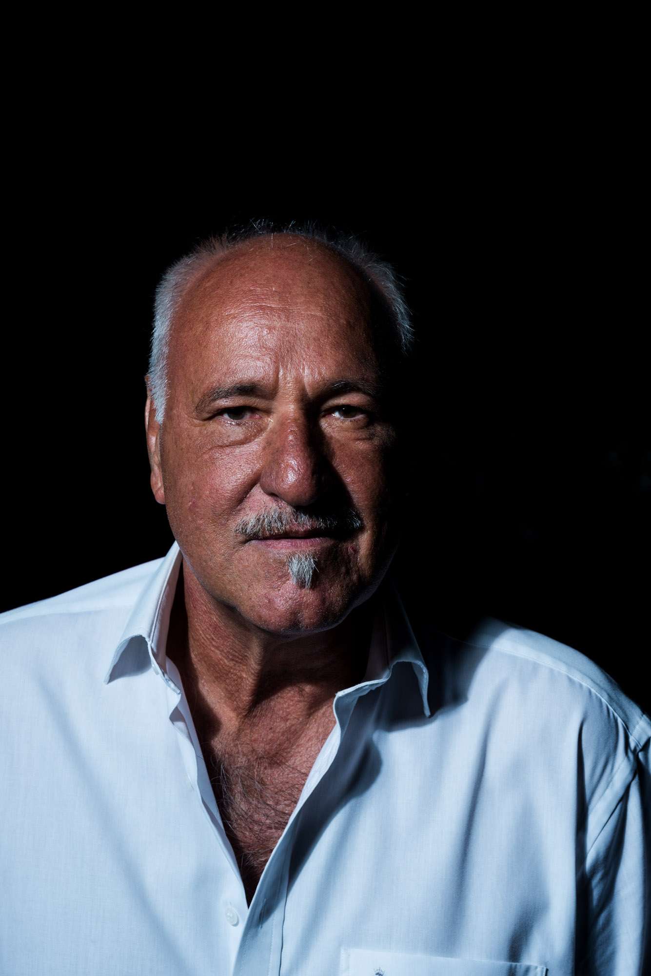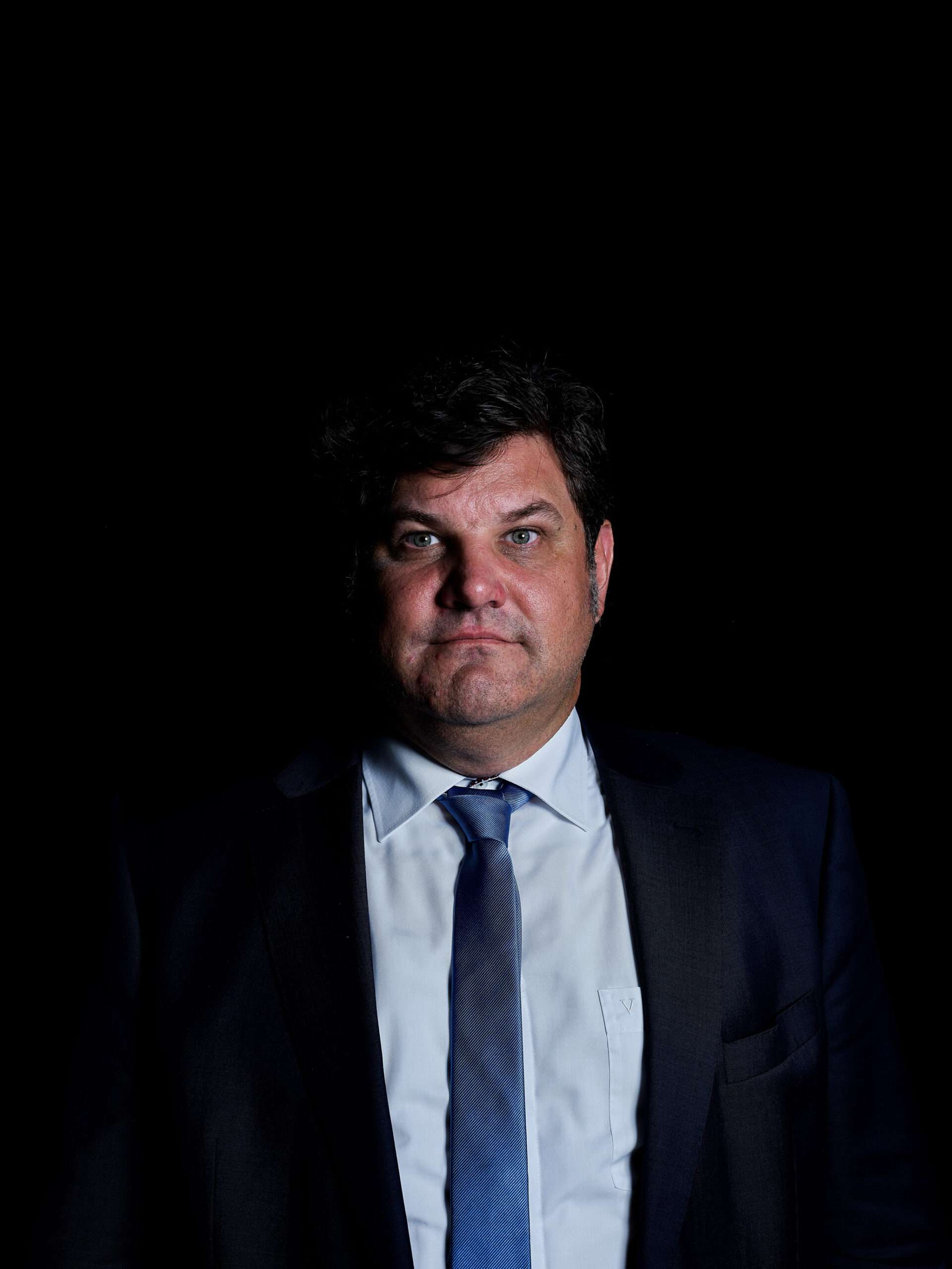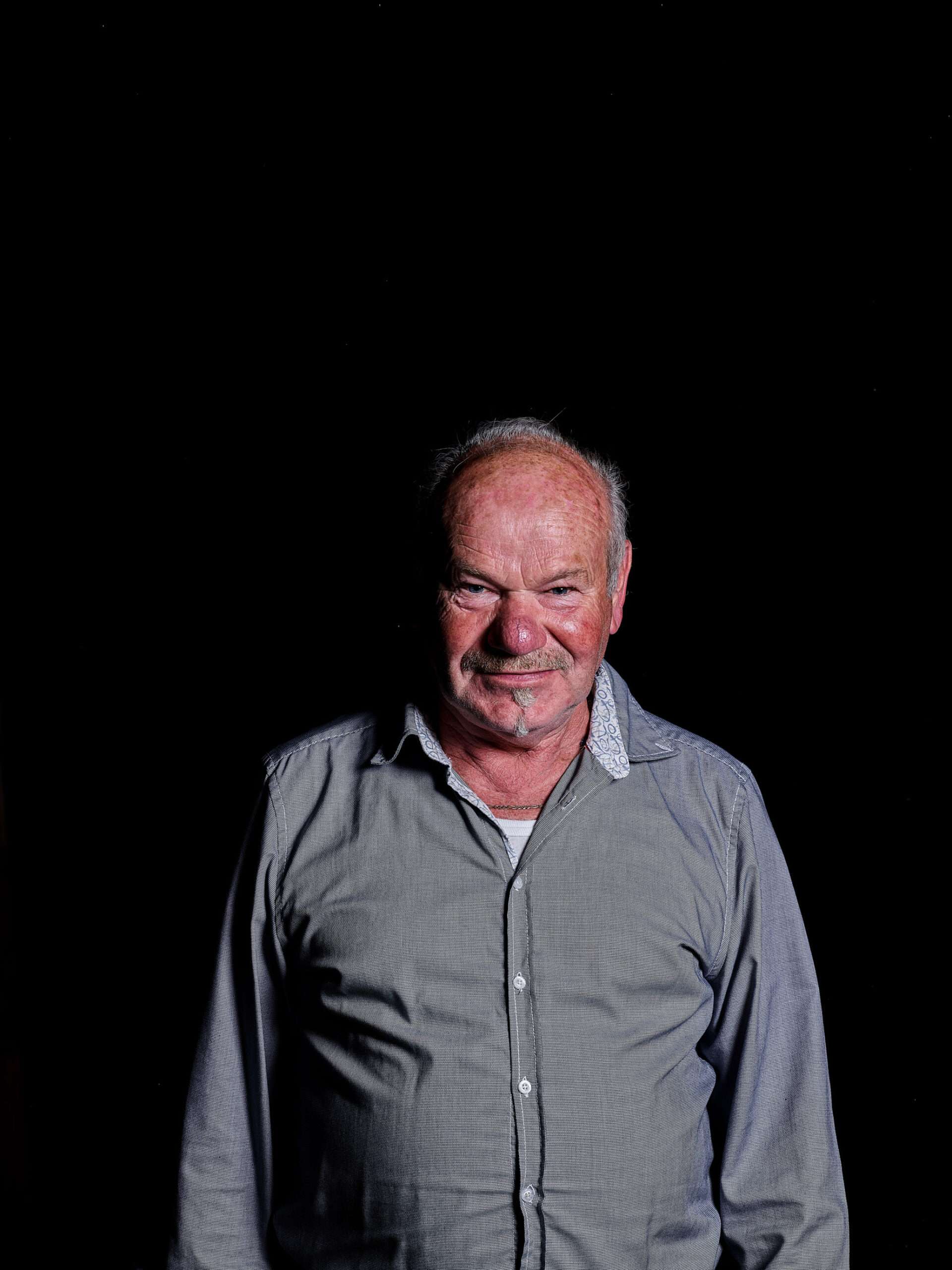 Schwarz-weiß Porträt eines Mannes mit Brille.