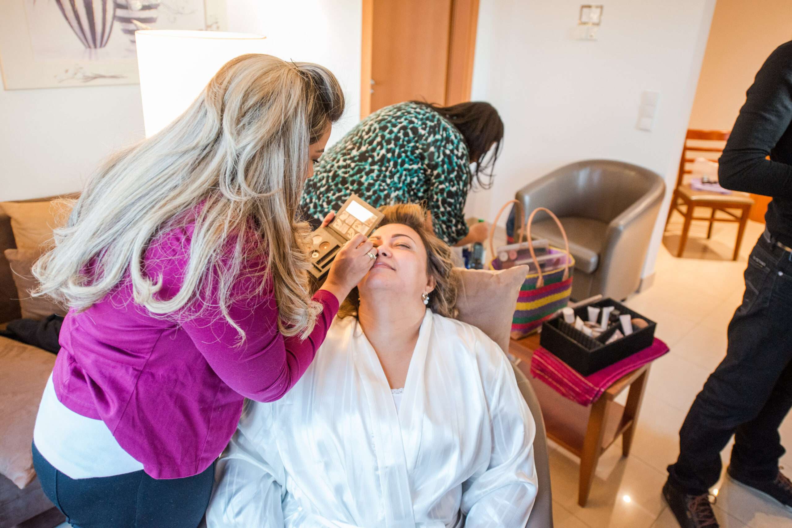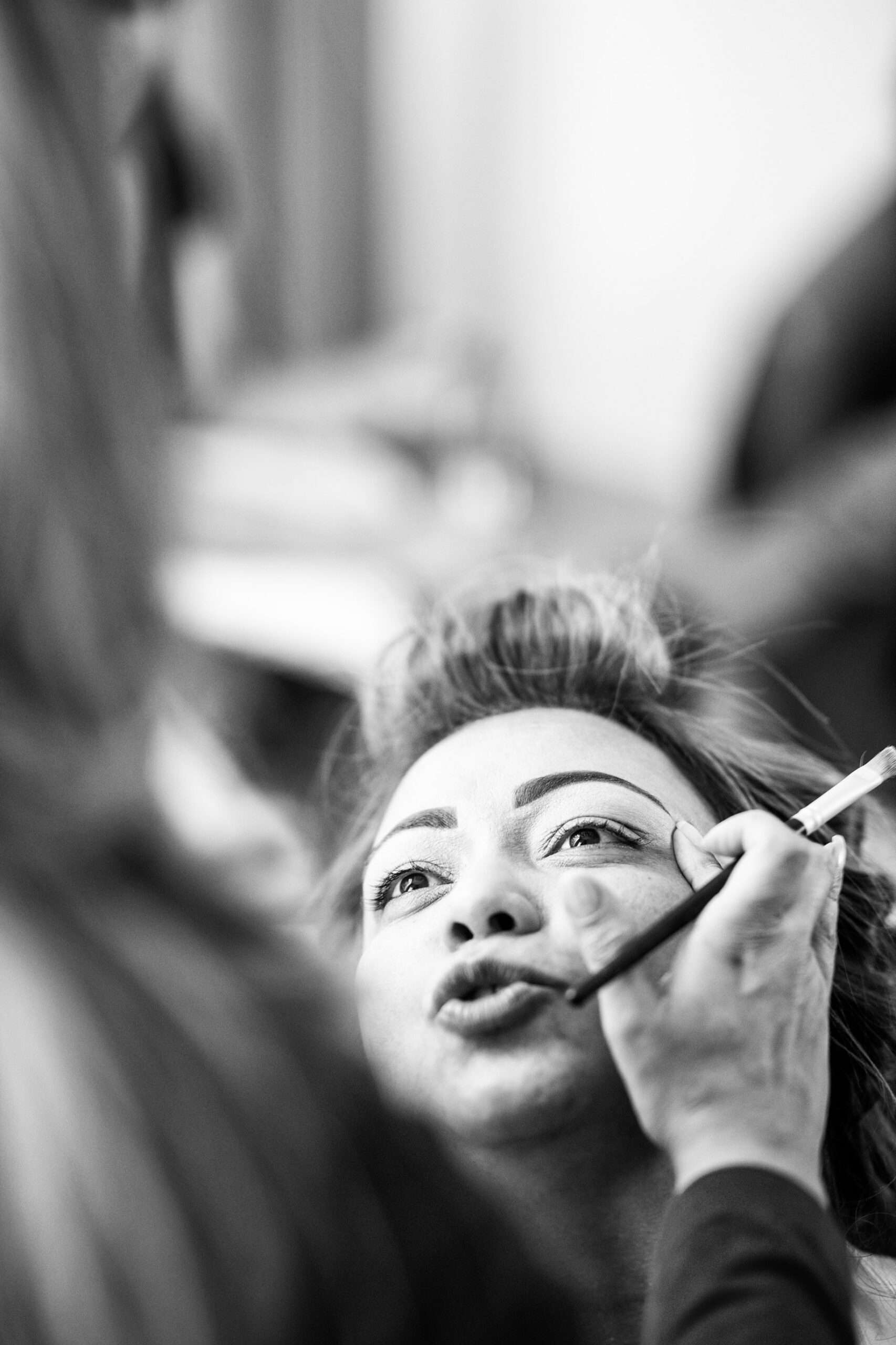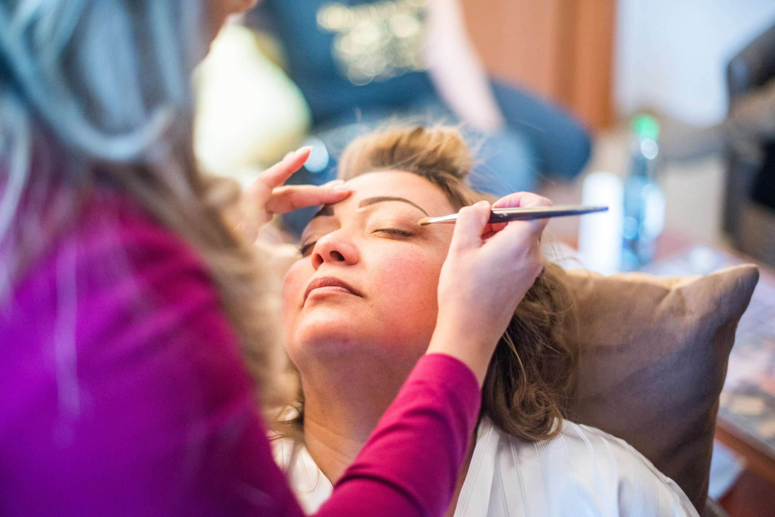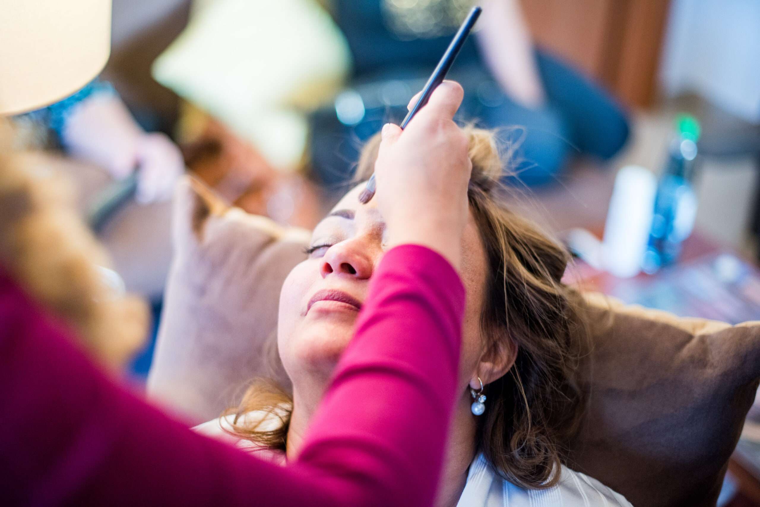 Frau erhält Make-up aufgetragen
