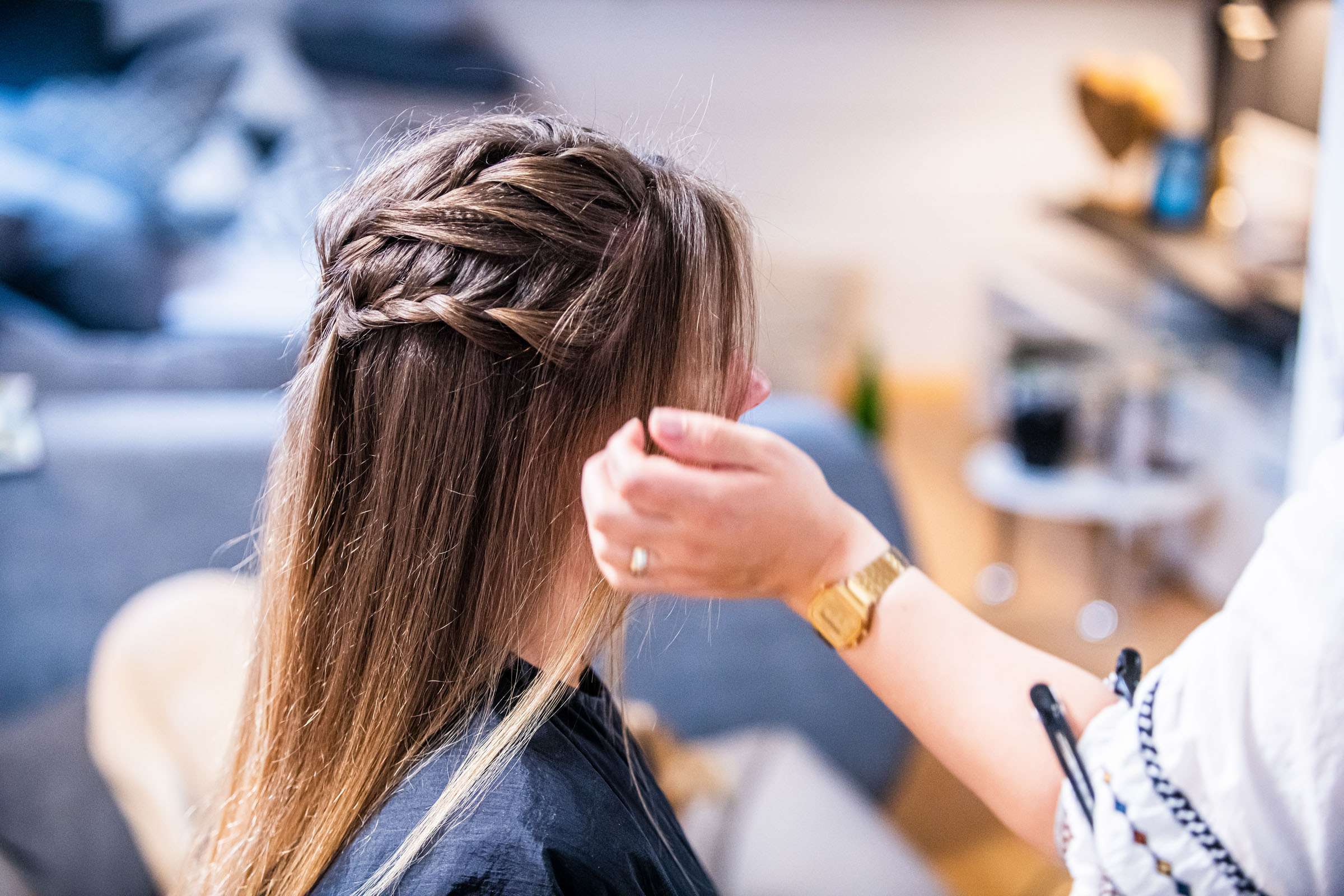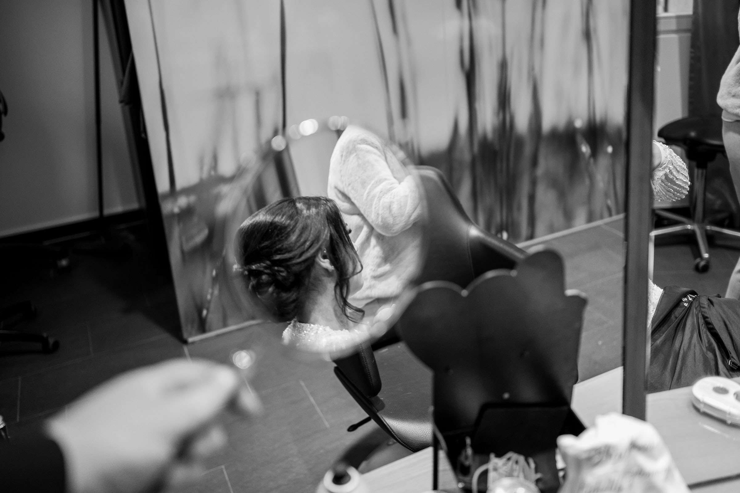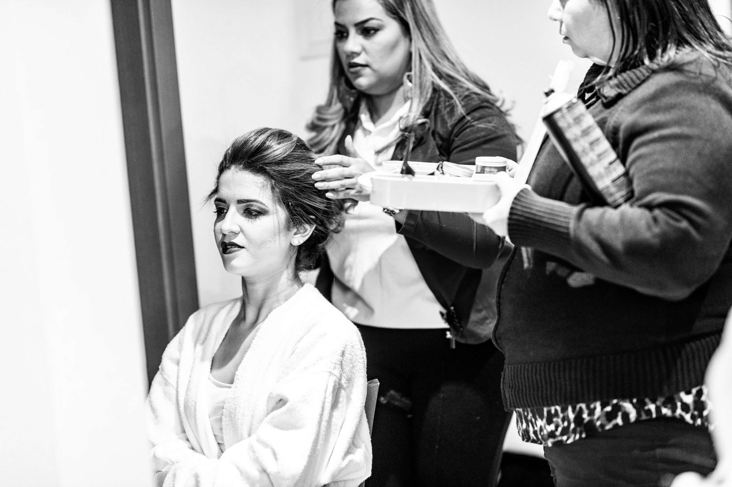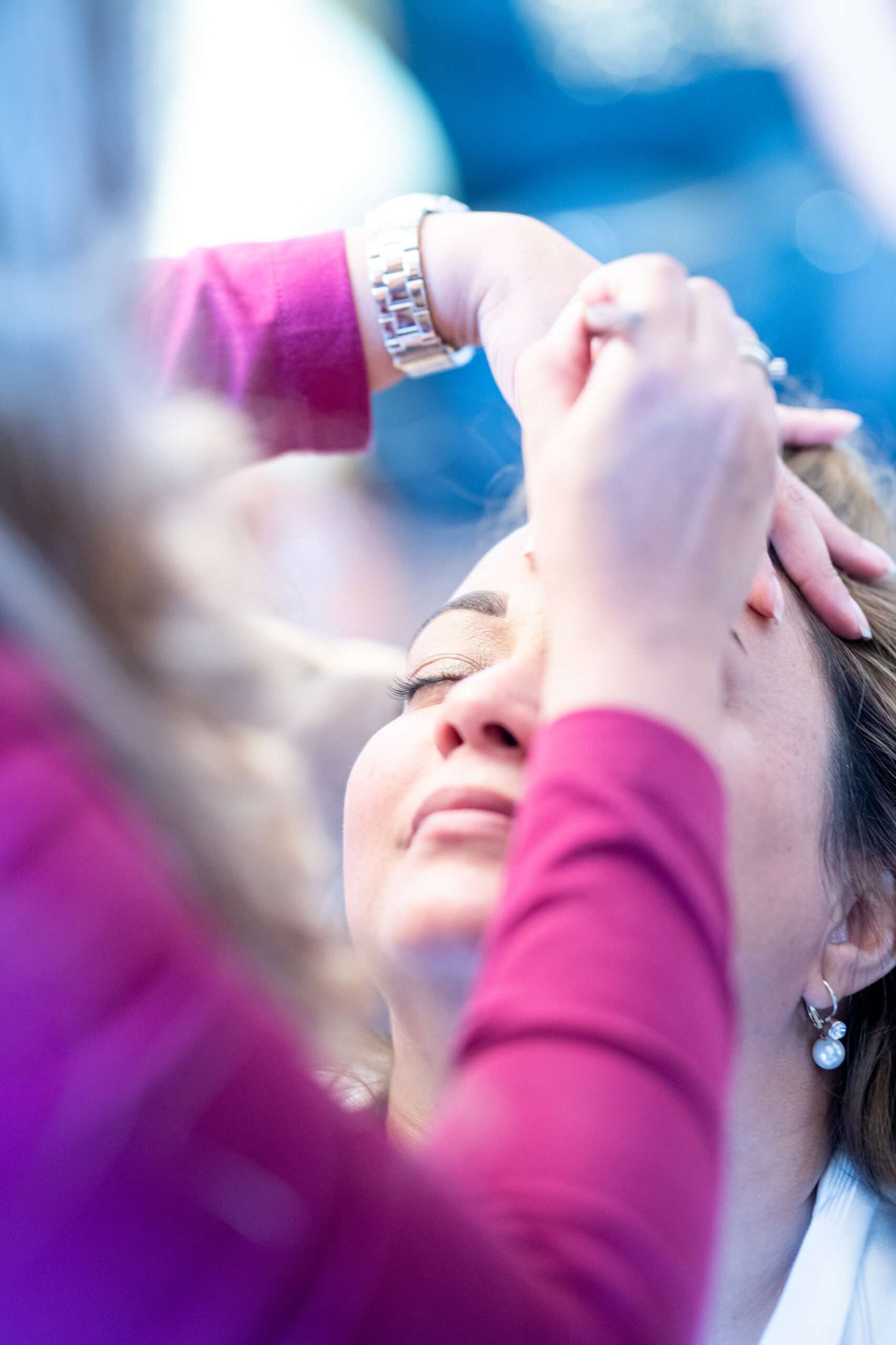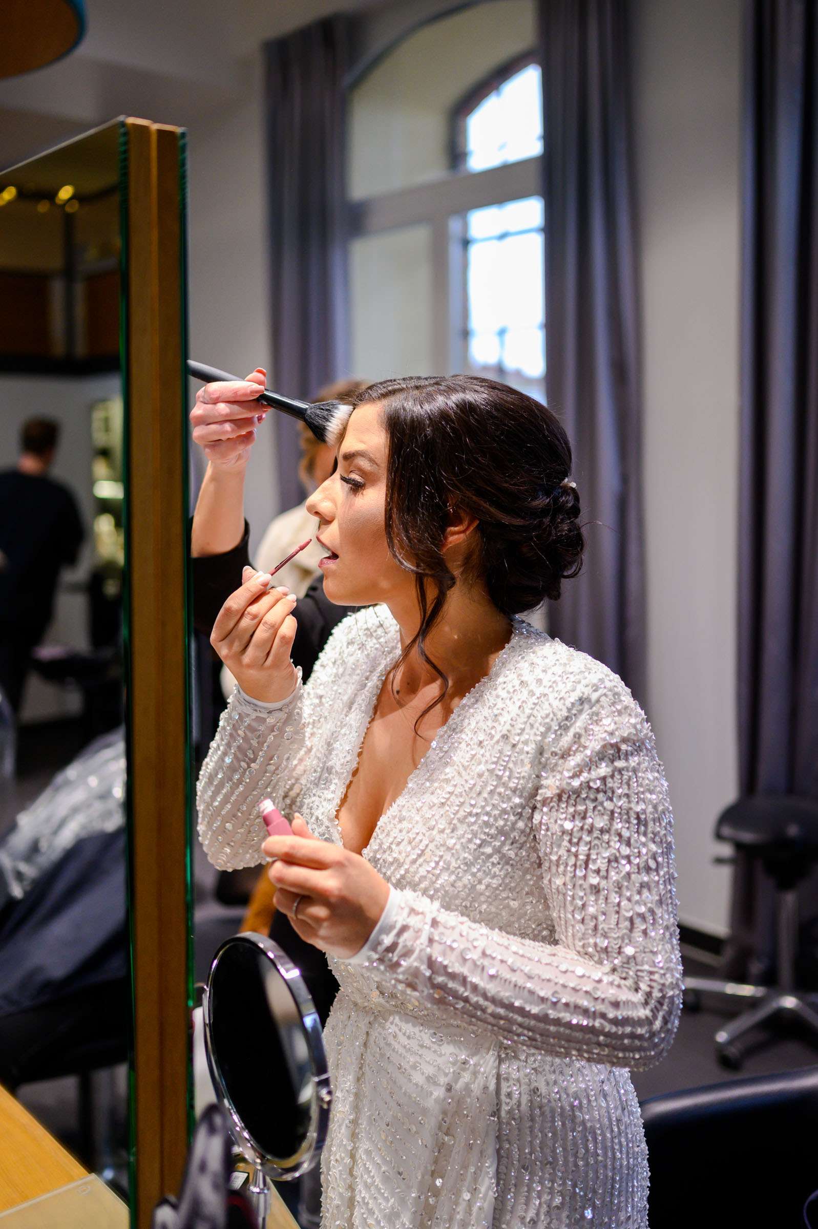Frau erhält Make-up aufgetragen