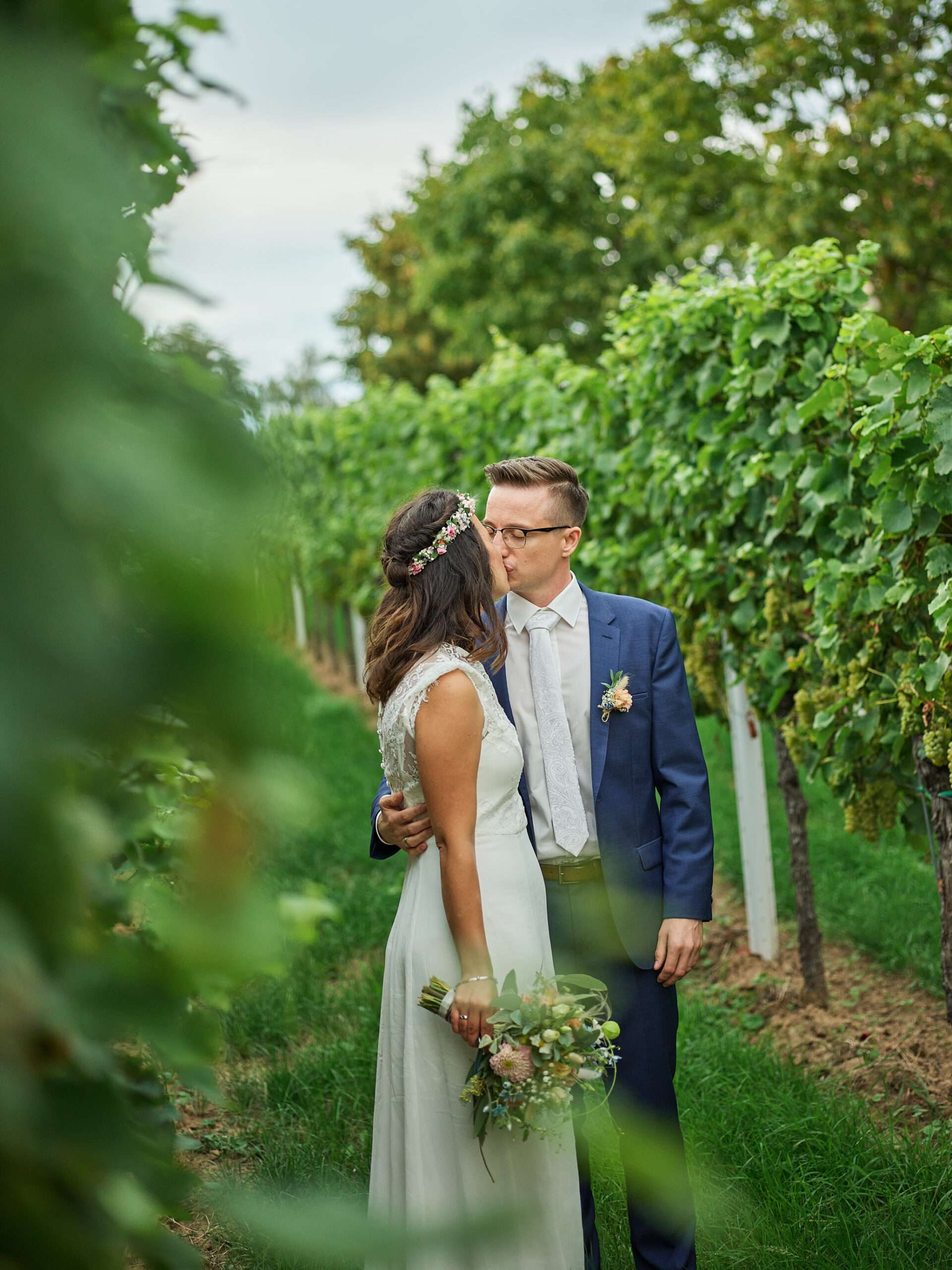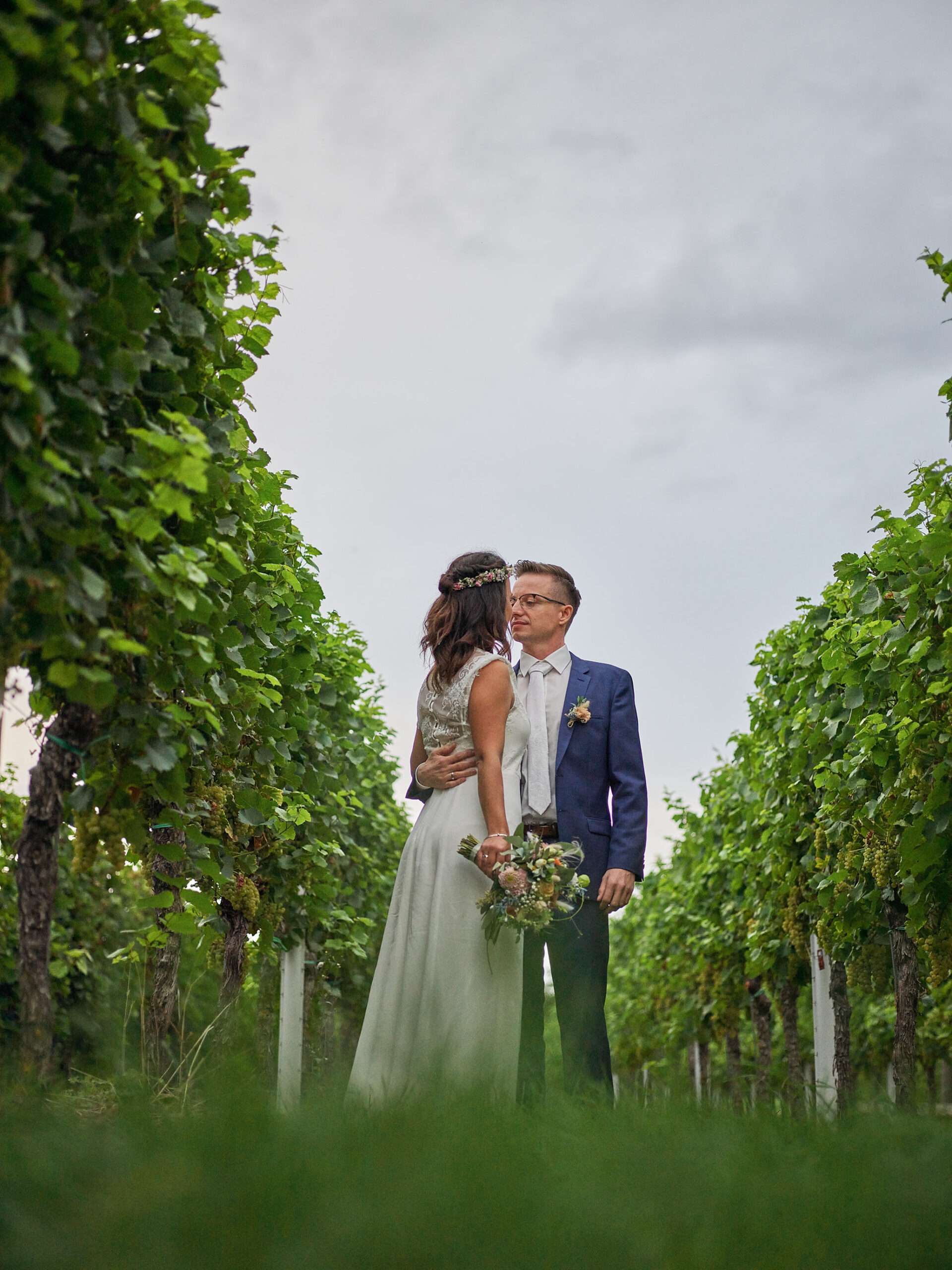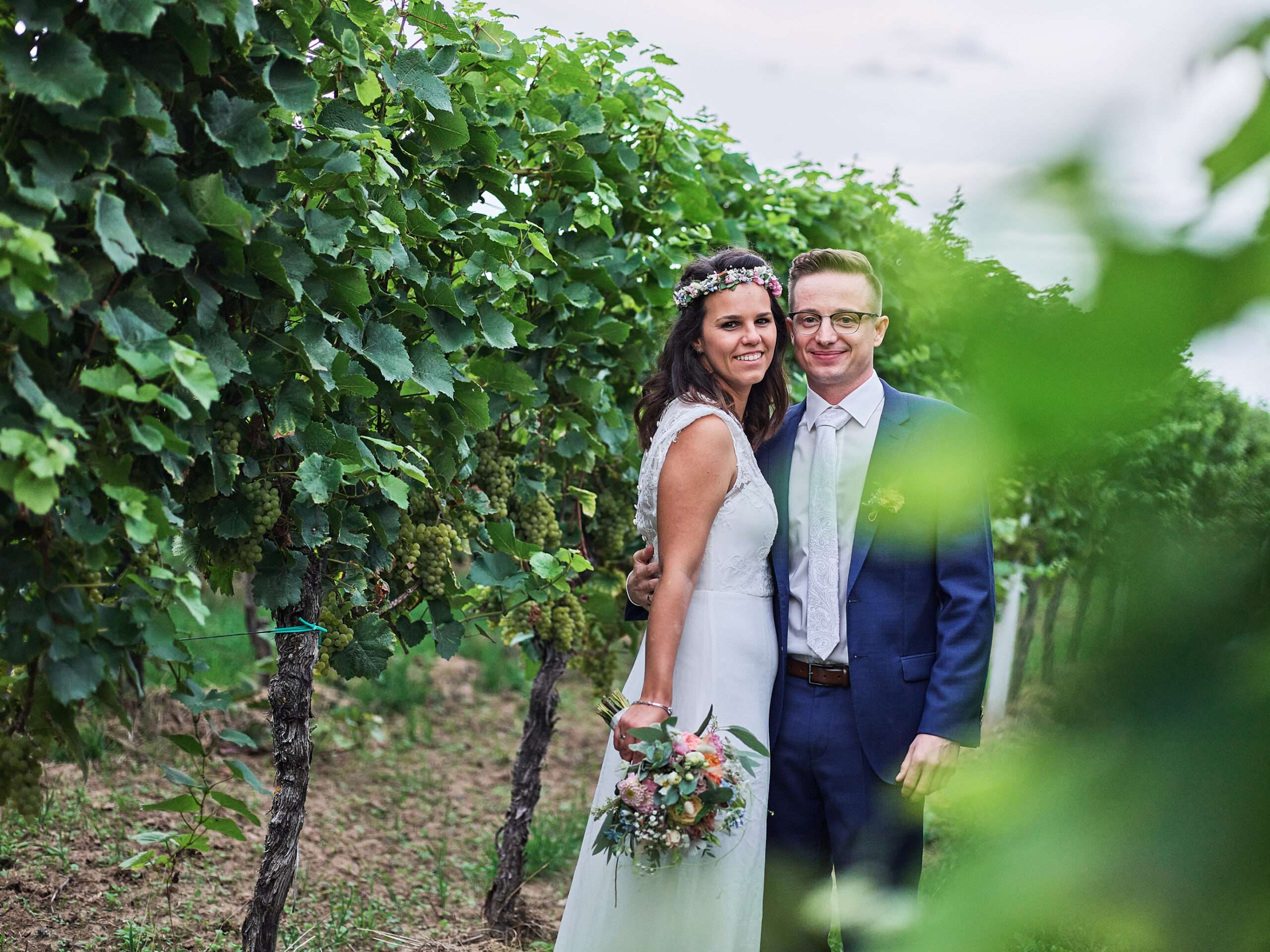 Hochzeitspaar im Weinberg